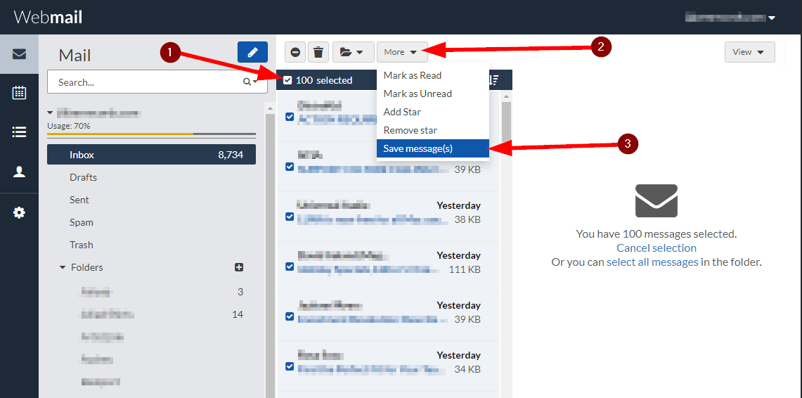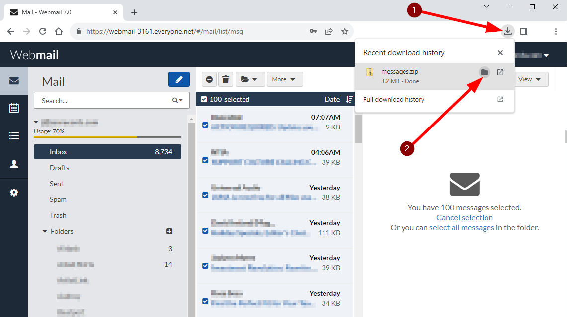 Email messages can be downloaded from webmail, one hundred at a time. While this may not be optimal for downloading many thousands of messages, it is a way for you make copies of your emails before you delete them from webmail.
